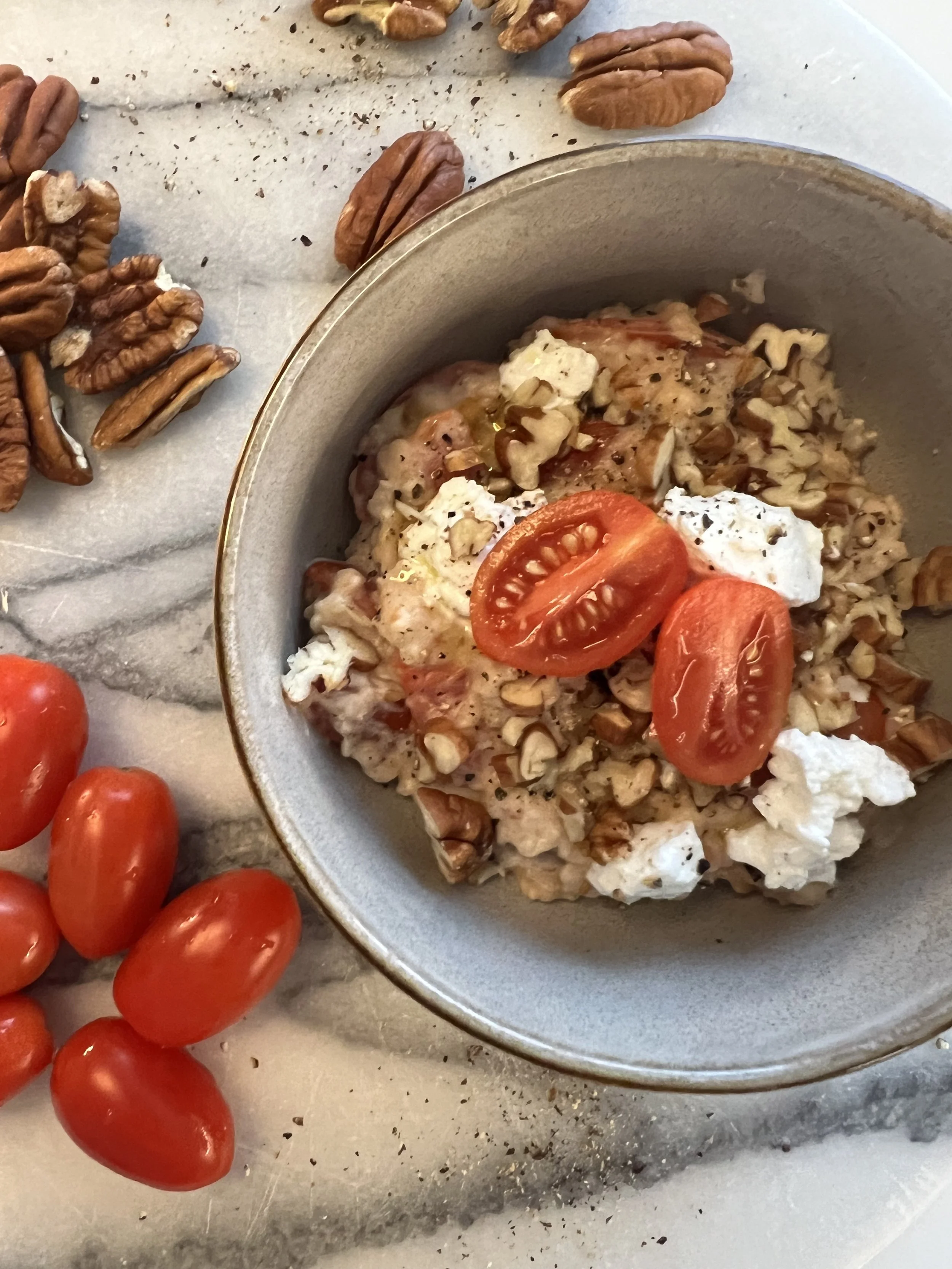 Savoury Tomato & Goat Cheese Porridge With Pecan Nuts