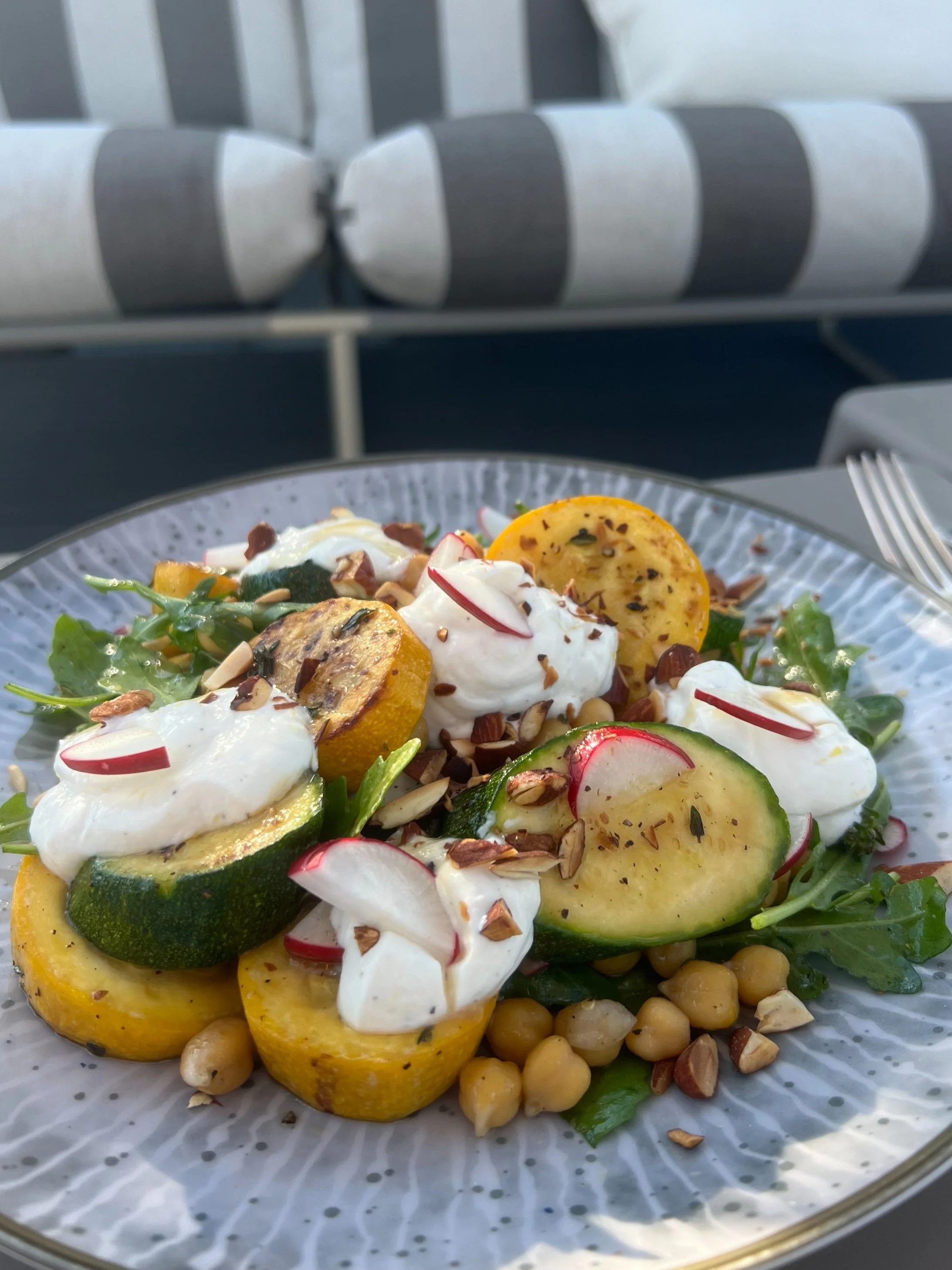 Indulge in a light, summery delight with this Summer Salad including Zucchini, Chickpea, Rocket, Roasted Almonds, Radish, and a Lemon-Ricotta Cream. Bursting with fresh ingredients and vibrant flavours, this salad is a must-try for the summer season. Perfectly balancing refreshing and warm elements, itโs not only delicious but also nourishing. Enjoy this beautiful dish that will make your taste buds sing!